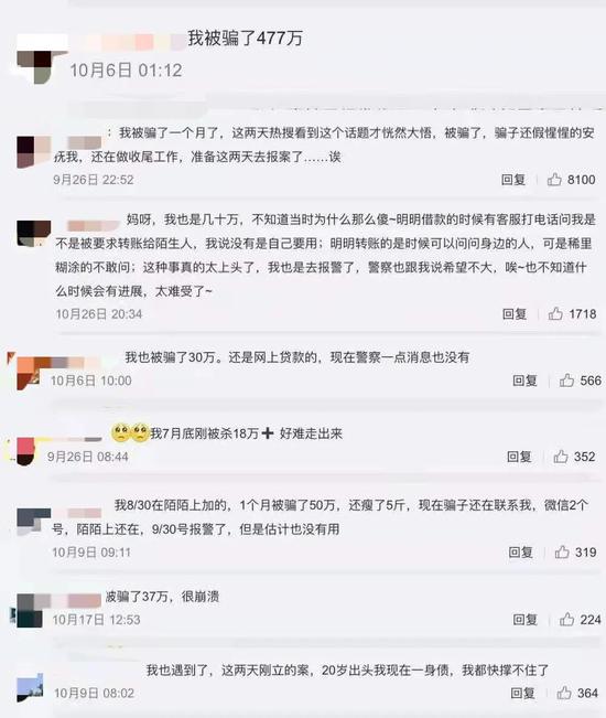 很多受害者在微博上发布自己被“杀猪盘”诈骗的经历。少则被骗十几万,多则上百万。