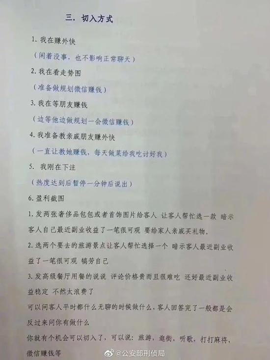图片@公安部刑侦局第三步:精心准备着话术,不经意间向你透露,有一个可以赚钱的方法。