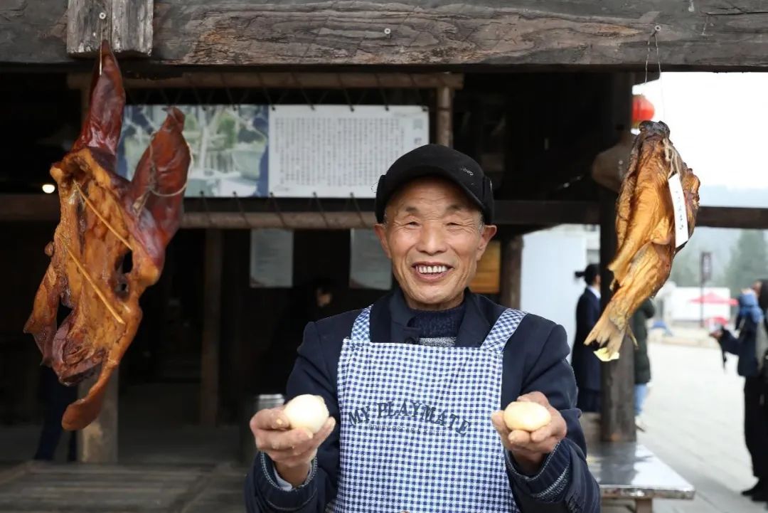 65岁的廖明权老人脸上洋溢着笑容,通过承包打糍粑等农耕体验项目,已经顺利脱贫,今年国庆他净赚8000元。