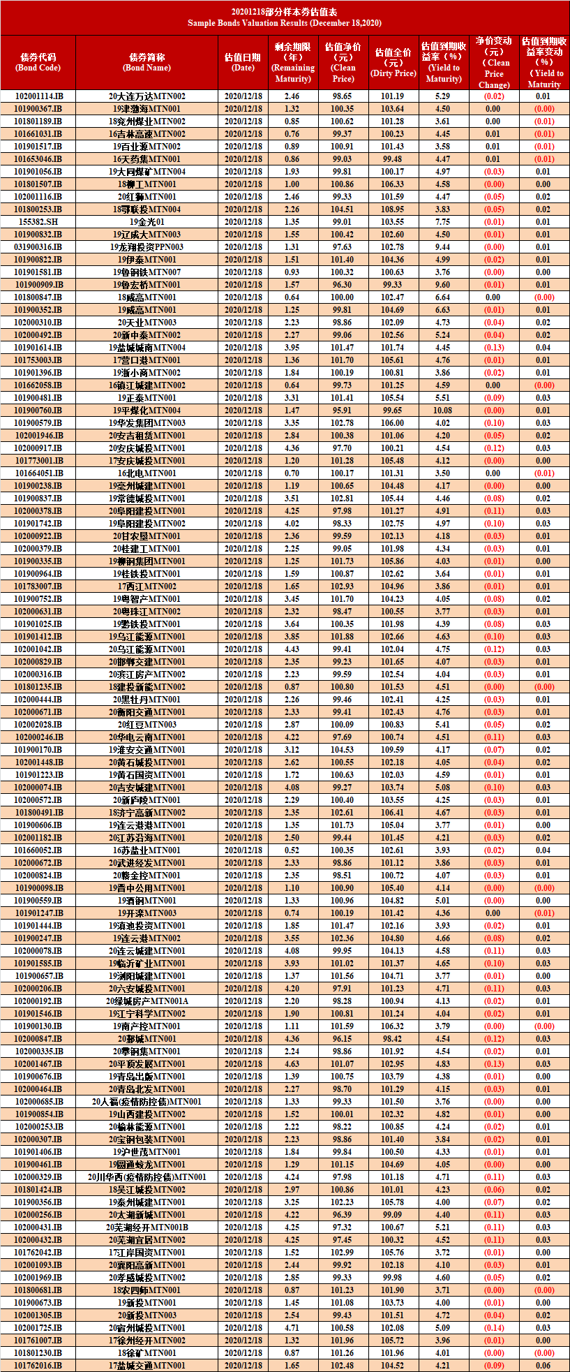 20201218城投债到期收益率曲线关键期限点值相较昨日变动