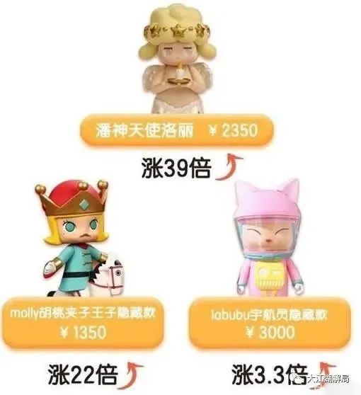 在二手交易平台上,原本59元的Molly,“潘神天使洛丽”款,已经上涨了39倍,可以卖2350元;“胡桃夹子王子隐藏款”,可以卖到1350元,上涨了22倍。