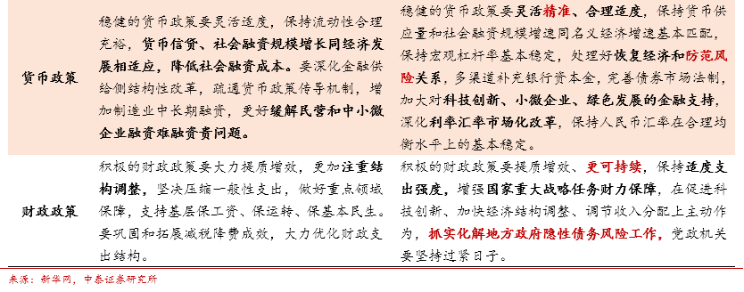 去年在介绍财政政策时指出,未提及关于总体支出强度、力度的相关表述,今年提到要“保持适度支出强度”。反映财政支出大概率仍会保持一定程度的扩张,不过随着财政收入端的逐渐修复,明年支出的扩张大概率也是顺其自然的,并不一定意味着债务会继续大幅增加。