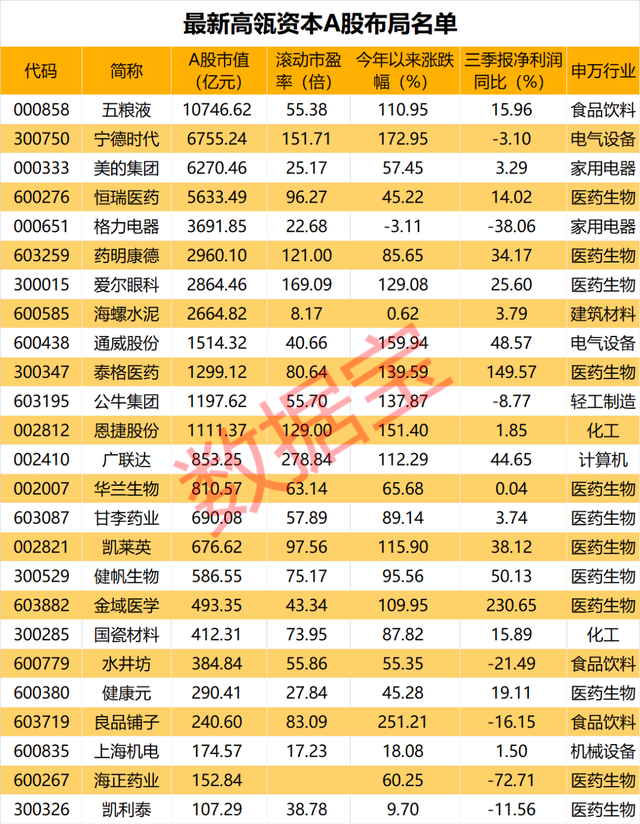 考虑到高瓴资本的投资动向已经成为不少投资者的参考标本,证券时报·梳理出最新高瓴资本在A股市场上布局的股票全名单,合计25股。高瓴资本所持股票主要分布在医药生物、消费、新能源、电气设备和家用电器等板块。