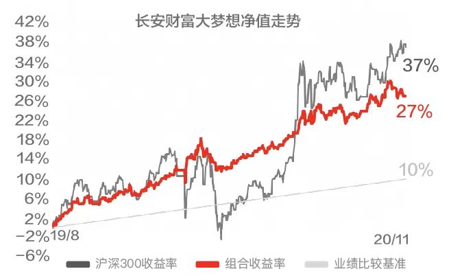 数据来源:长安基金,长安财富大梦想成立于2019.08.07.截止至2020.11.30。组合的过往业绩并不预示其未来表现,不构成组合业绩表现的保证。基金有风险,投资需谨慎