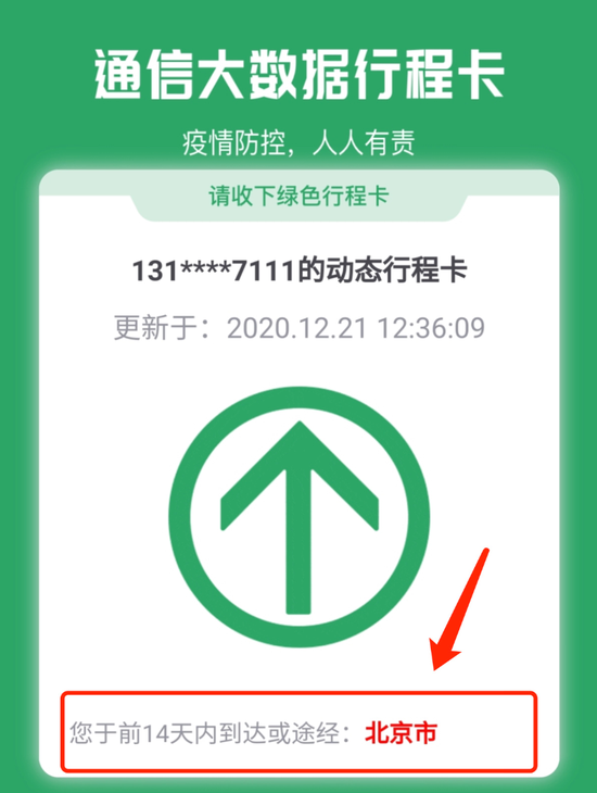 今年11月,通信行程卡的微信公众号曾发布“关于行程卡风险地区提示的重要通知”:自11月10日0时起,行程卡将对包含中高风险区域的地市名称标记为红色,但仅作为出行提示,不关联健康状况,具体管控政策需遵循各地联防联控机制。