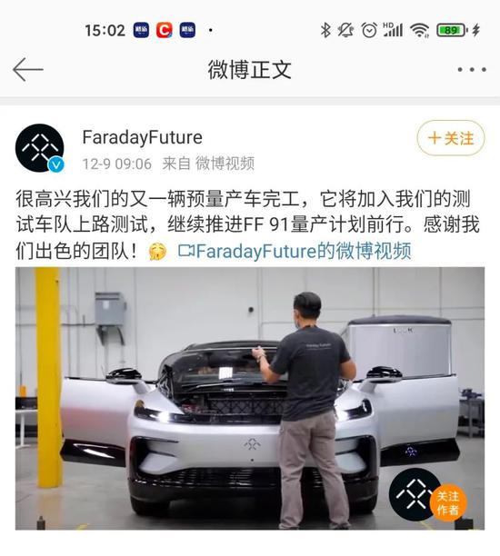 此次FF在国内成立经营范围包含新能源汽车销售的公司,在汽车行业分析师张翔看来,或将是FF 91上市的一个信号,“它的主要市场还是面向国内的,现在应该是在为国内市场布局做准备。”