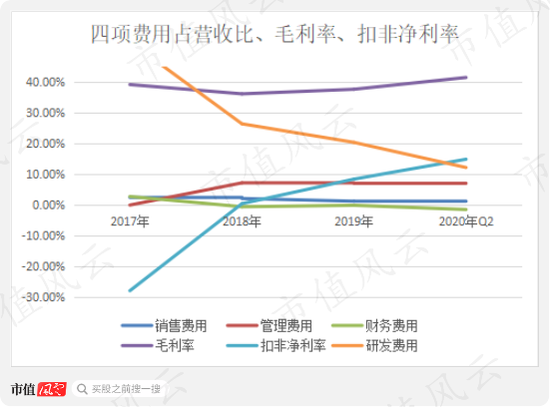 扣非净利率2018-2020年Q2期间,在毛利率和三项费用率稳定的情况下上升,是由于研发费用率在销量上升的稀释下有所下降,总体使得扣非净利率上升。