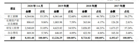 截至2020年Q2,公司研发技术人员177人,占员工总数比达 81.19%,其中核心技术人员 6 人。