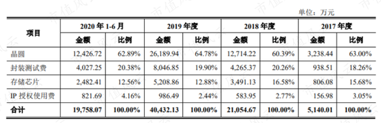 封装测试占营业成本的20%左右。存储芯片、IP授权使用费占剩下的20%成本。