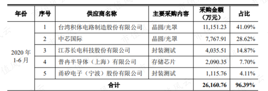 晶圆是生产芯片所用的主要原材料,其耗用成本占营业成本的60% 左右。公司晶圆供应商为台积电、中芯国际等知名晶圆代工厂。