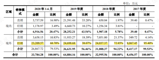 恒玄科技的主要营销模式是买断式经销, 2020年上半年占收入的72.19%。2019年直销占比超过经销。2018年以前大部分是经销。
