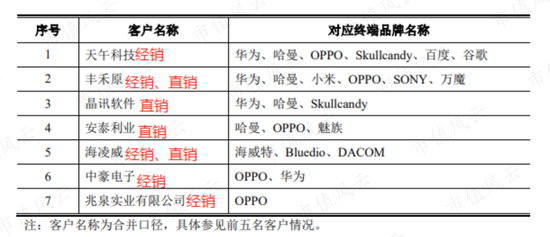 终端品牌厂商通常不直接与公司发生交易,下表为公司前五名客户与部分终端品牌厂商的对应关系: