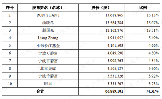 (注:宁波百碧富、千碧富、亿碧富为员工持股平台,亿碧富在10大股东之外)