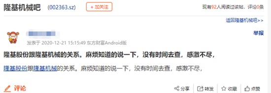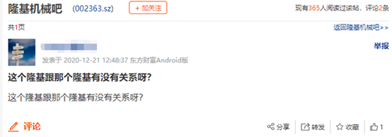 在隆基机械的讨论区,有股友道出了买入该股的真相,有股友表示,市场炒的是隆基股份而非隆基机械,并且还有不少股友在询问隆基股份与隆基机械的关系。
