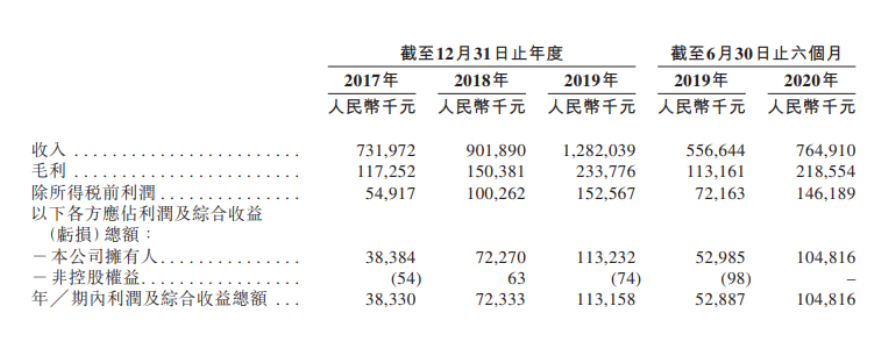 得以于中国经济的高速发展、城镇化的不断推进以及人民生活水平的提高,过去几年荣万家生活取得不错的财务业绩。2017-2019年荣万家生活的收入由7.32亿元增至12.82亿元,复合年增长率为32.3%;同期利润从3830万元增至1.13亿元,同比增长71.8%。而在2020上半年,荣万家生活实现收入7.65亿元、实现利润1.05亿元,分别同比增加37.4%以及98.1%。