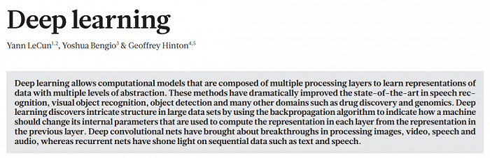 三人于15年共同发表在Nature上的‘Deep Learning’更是获得了3万多次的高引用。