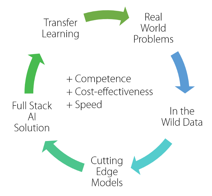 为了增强客户能力,Element AI利用其独特的功能来帮助其客户处理和清理其大型专有数据集;在必要时应用GAN和类似模型来丰富和增加用于培训和分析的数据;利用其工具集可以快速训练,验证和改进可以与实际流程‘一致’运行的全栈AI解决方案。