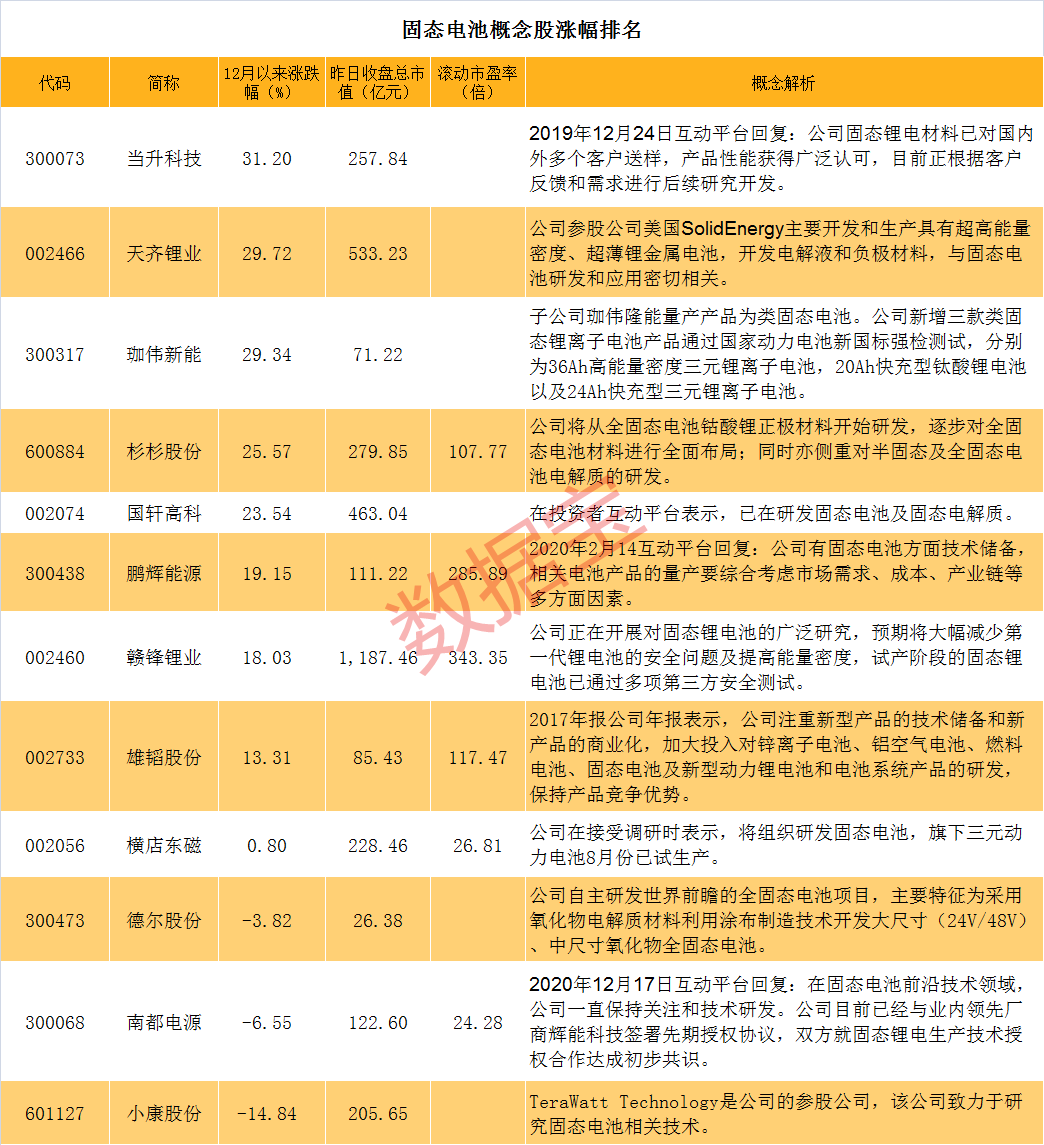 固态电池概念股飙涨。