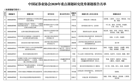 中证协公布2020年度优秀课题,19家券商上榜,财富管理、数字化转型、注册制下中介责任等课题大热