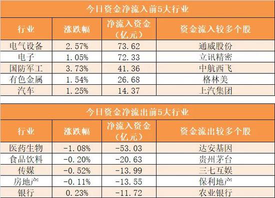 28个申万一级行业中,13个行业实现资金净流入,其中电气设备行业净流入73.62亿元居首。