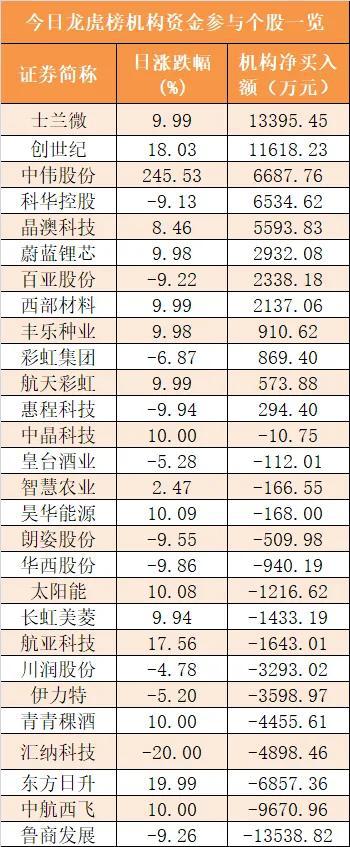 盘后龙虎榜数据显示,机构现身28股,其中士兰微等12股呈现机构资金净买入,鲁商发展等16股呈现机构资金净卖出。