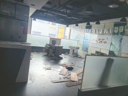 而在本次*ST天润收购标的所在的8楼,西边已经被围起,水泥钢筋散落一地,垃圾也未清理,散发出异味。东边有十余家商铺,但大部分商铺都是大门紧锁,仅剩三家餐饮店营业。