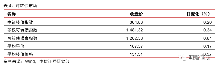 12月23日转债市场,中证转债指数收于364.83点,日上涨0.20%,等权可转债指数收于1,481.32点,日上涨0.34%,可转债预案指数收于1,202.58点,日上涨0.64%;平均平价为107.73元,日上涨0.32%,平均转债价格为131.31元,日下跌0.37%。323支上市交易可转债(辉丰转债除外),除新星转债、白电转债、现代转债、小康转债、今飞转债、北方转债和鲁泰转债横盘外,122支上涨,194支下跌。其中蔚蓝转债(13.41%)、福莱转债(12.08%)和上机转债(10.13%)领涨,隆利转债(-8.63%)、乐歌转债(-8.32%)和宝莱转债(-6.65%)领跌。320支可转债正股(*ST辉丰除外),除威派格、纵横通信、维尔利、利群股份、东风股份、山鹰国际、金轮股份、荣晟环保、招商公路、中化岩土、模塑科技、博世科和厦门国贸横盘外,150支上涨,157支下跌。其中福莱特(10.00%)、上机数控(10.00%)和蔚蓝锂芯(9.98%)领涨,隆利科技(-8.35%)、伟明环保(-8.11%)和龙大肉食(-5.34%)领跌。