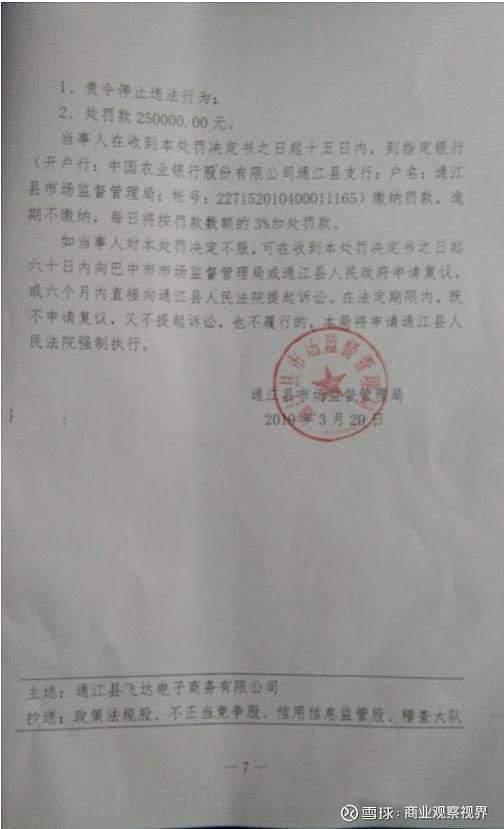 基于以上事实,通江县市场监督管理局责令飞达公司停止违法行为,并处以25万元罚款。