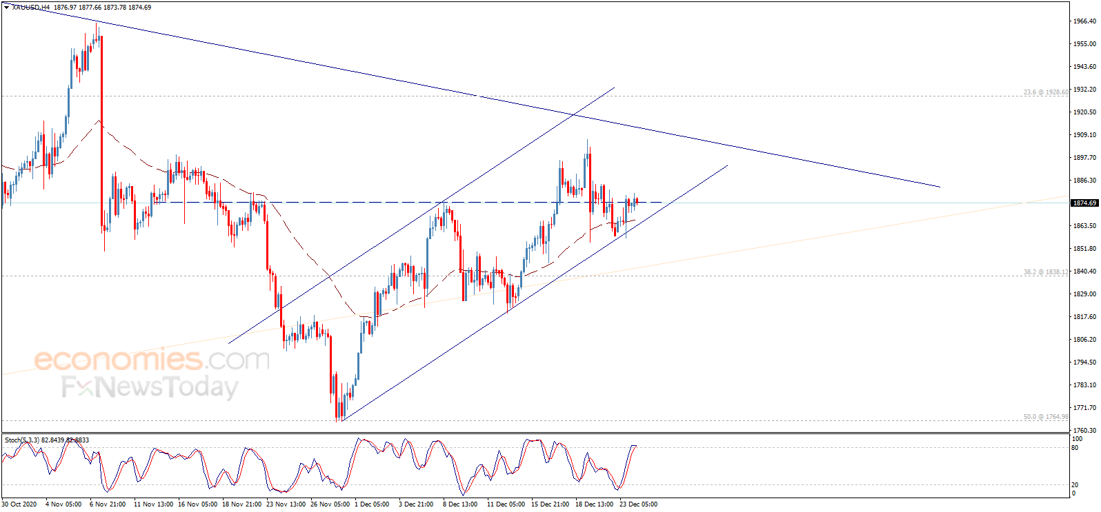 FX168财经报社(香港)讯 周四(12月24日)亚市尾盘,现货黄金小幅上涨,金价现报1876.50美元/盎司附近。知名财经资讯网站Economies.com周四撰文,对日内欧元/美元、英镑/美元、美元/日元和黄金走势进行前瞻分析。