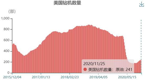 截止至2020年11月25日,美国原油活跃钻机数量为241部,较前周增加10部。