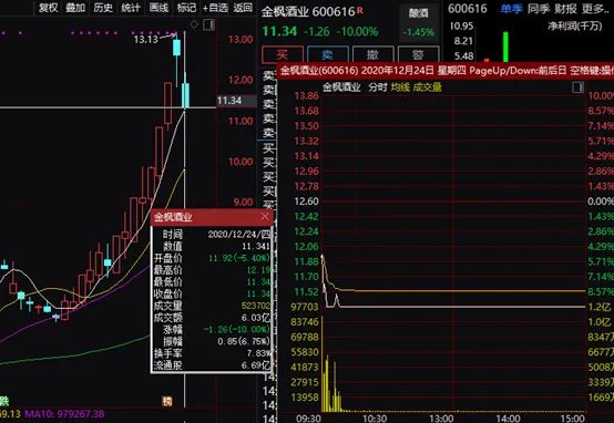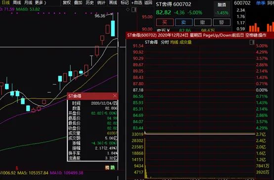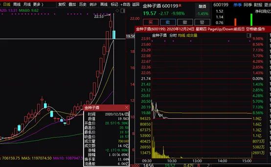 23日,多只酒业股一改此前齐刷刷上涨态势,开始集体“大蹦极”,同时伴随成交急剧放量,当天半数以上酒业股收盘下跌,ST舍甚至直接上演“天地板”。