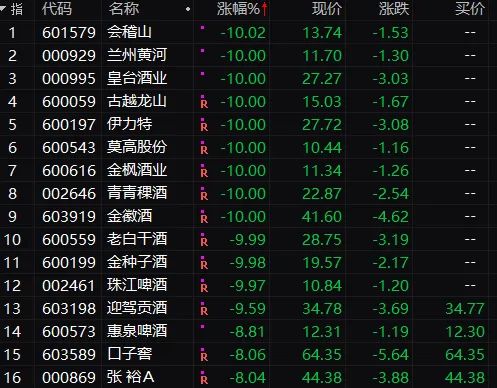 酒业股再遇集体暴跌:白酒指数创12月以来最大跌幅 逾10股集体跌停