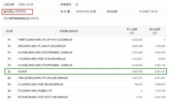 此前一天的12月23日,热门酒业股古越龙山也是类似情形,当天买方前五席位全部为营业部席位,卖方席位中则现一家机构席位,大举卖出7845.25万元。