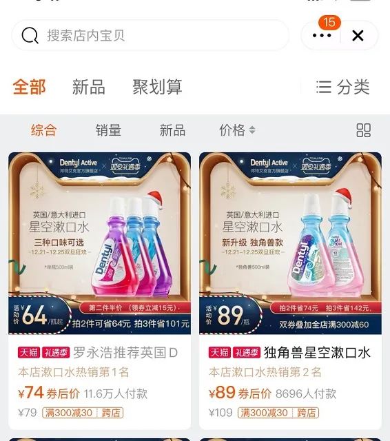 第一财经记者12月24日发现,罗永浩抖音号商品橱窗内该款漱口水产品已经下架,但邓特艾克旗舰店首页显示,标题为“罗永浩推荐英国Dentyl邓特艾克星空漱口水液持久型便携杀菌防蛀牙”的漱口水放在了页面的第一个窗口,且销量最高,已经有11.6万人付款,月销5万+,目前该页面售价为券后74元起。据此前罗永浩直播间介绍,该款产品在各平台月销45万+。
