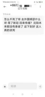 沈阳新增确诊者尹某某的密接者收到带有言语攻击的短信。