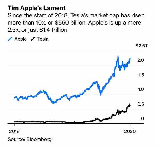自2018年初以来,特斯拉的市值增长了10倍以上,即5500亿美元。而苹果公司市值上涨了2.5倍,即1.4万亿美元。