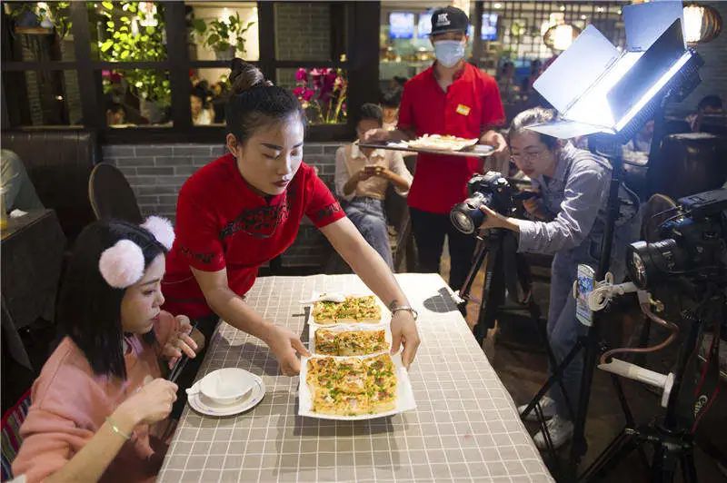 2017年11月14日,某博主签约广州一家新媒体公司,公司为她打造了一个美食内容运营团队,专门做“吃播”(张梓望 摄/视觉中国供图)