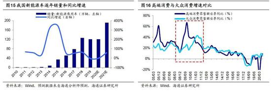 明年行业配置的第二梯队是内需:“十四五”规划《建议》再次强调构建“双循环”新发展格局,提出形成强大国内市场,将扩大内需作为战略基点。刚刚闭幕的中央经济工作会议强调注重需求侧管理,扩大内需着力点就在扩大消费上,发挥国内市场消费在构建“双循环”格局中的重要作用,努力形成需求牵引供给。展望明年,大众消费有望崛起。回顾08年金融危机历史经验,货币宽松、四万亿等刺激政策推出后,高收入人群首先受益,08Q4-09Q2城镇居民人均可支配收入增速分别高于农村居民家庭人均现金收入增速的6.0%/1.6%/1.9%,这一阶段汽车、家电等耐用消费和高端白酒等可选消费行业需求旺盛,珠宝、化妆品、汽车等高端消费增速迅速上升;09Q3起随着基建、房地产投资落地和制造业、服务业用工需求扩张,农村居民收入增速逐渐超过城镇居民,粮油、食品、饮料等大众消费增速顺势崛起。今年以来,城镇居民收入受到疫情的影响较小,而农村居民特别是外出务工者收入受冲击较大,20Q3城镇居民人均可支配收入同比增5.4%,高于农村外出务工劳动力月均收入增速3.3%,因此今年可选消费品中汽车和高端白酒表现亮眼。借鉴09-10年经验,预计乳制品、餐饮、超市等大众消费需求或将大增。此外,随着收入水平的增加和健康意识的提升,预计专科医院、高端医疗器械、医疗美容、养生保健等医疗服务领域需求也有望提升。