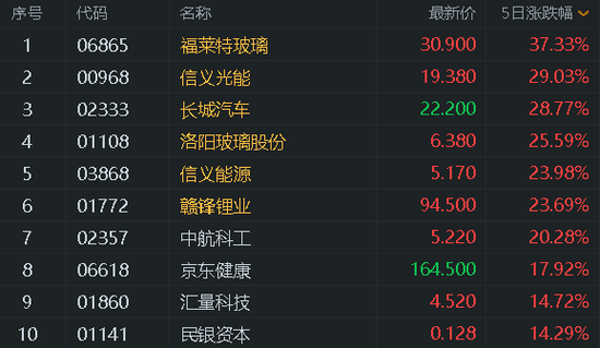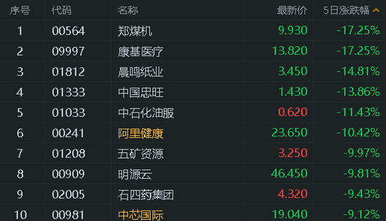 港股通一周涨跌幅榜: