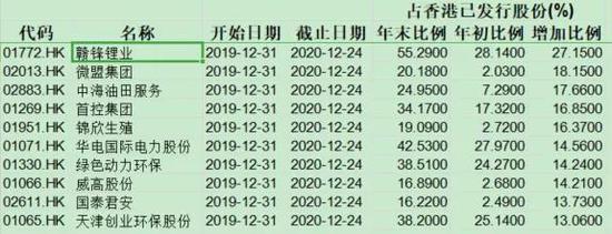 在内地资金大肆流入港股市场的背景下,众多个股的内资持股比例飙升。在今年内资持股比例上升最多的要算赣锋锂业H股(01772,HK),该股今年的内资持股比例已经从28.14%涨至了55.29%。而就在内资的加持下,赣锋锂业H股今年股价暴涨395.5%,而其A股同期的涨幅为215.32%。