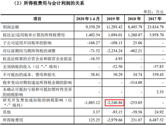结果显示,2017年度、2018年度、2019年度和2020年上半年,以上述方法倒推出厦钨新能“税务口径的研发费用”分别为0万元、2249.16万元、19918.76万元和9645.51万元,总计约为3.18亿元。同期,厦钨新能合并利润表所列示的研发费用累计约为8.51亿元,两者合计相差约5.33亿元。