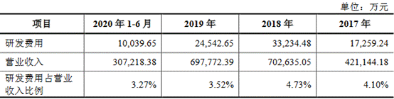 同期,同行业可比公司研发费用率平均值分别为3.85%、3.97%、4.39%和4.83%。