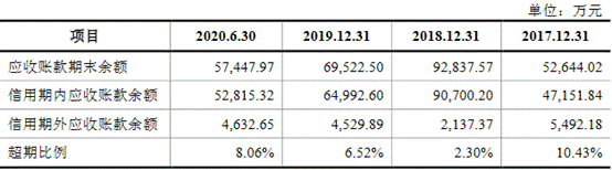 报告期各期末,厦钨新能逾期应收账款余额分别为5492.18万元、2137.37万元、4529.89万元和4632.65万元,占应收账款余额的比例分别为10.43%、2.30%、6.52%和8.06%。