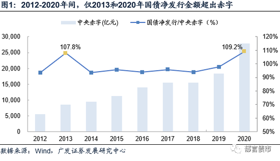 2021年国债净发行额存在超过预算赤字的可能。回溯历史数据可以发现,中央赤字与国债净发行额之间并非完全对应关系。2013和2020年,国债净发行额均超出当年的中央赤字。背后的原因在于我国国债采用余额管理,通过限定一个年末不得突破的国债余额上限,来控制国债发行,而非直接根据中央赤字安排发行。因而国债净发行额,可能高于中央赤字,高出约8-9%,类似2013和2020年;也可能低于中央赤字,类似2012和2014-2019年,低了约5%。假如2021年中央赤字约2.3-2.4万亿元,对应的国债净发行范围在2.20-2.62万亿元,明显低于2020年的4万亿元。