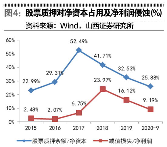 根据上述预测,信用业务总收入为1161亿元、1241亿元、1316亿元,随着股票质押规模的压缩和市场的逐渐回暖,风险整体可控,假设信用业务利润率维持2019年的水平,那么2021年利息净收入分别为506亿元、541亿元、574亿元。
