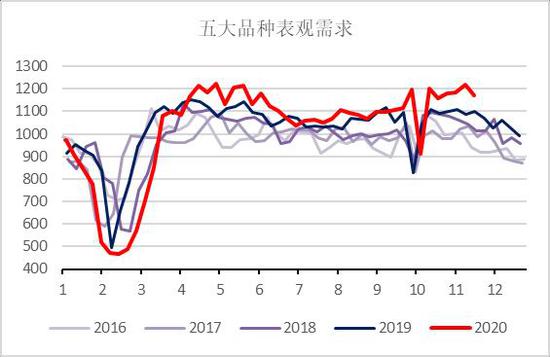 图9:五大品种周度表观需求
