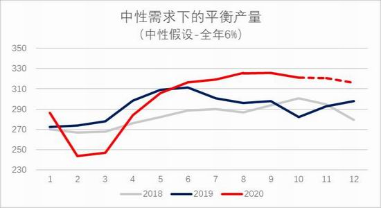 图27:中性需求下平衡产量推演