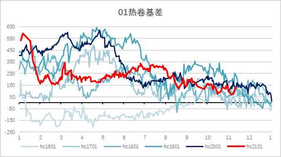 图4:热卷01合约基差季节图