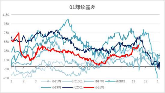 图3:螺纹01合约基差季节图