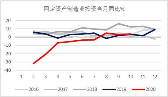 10月的其他数据:房地产开发投资当月同比增速为12.7%,微高于9月的12%;商品房销售面积当月同比增速为15.3%,远高于上月的7.2%;100大中城市的土地供应占地面积季节性回落,与往年同期持平;房屋新开工面积当月同比增速3.5%,转负为正。固定资产基建投资当月同比增速为7.3%,回到了7、8月较高的水平;固定资产制造业投产当月同比增速为3.7%,略好于上月的3.0%。
